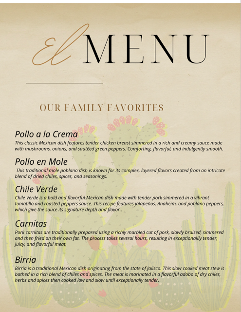 Enjoy a year of delicious, home-style Mexican meals prepared by Selene Chandler—perfectly portioned to feed a family of four. This package includes 12 complete meals, featuring a variety of traditional favorites. Most dishes are served with rice and beans and/or classic garnishes to create a satisfying, well-rounded meal experience.